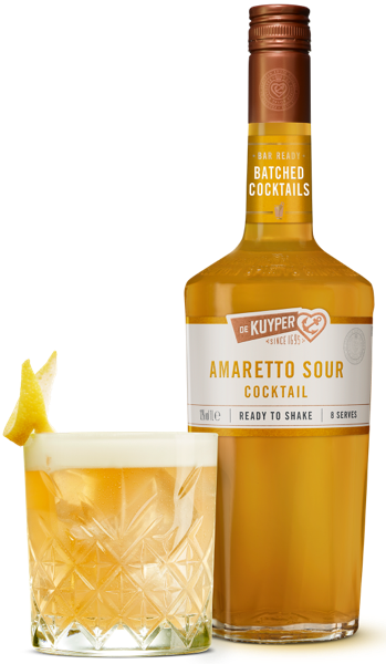 De Kuyper Amaretto Sour Cocktail is a sweet and tangy cocktail with the taste of Amaretto and a twist of lemon. Shake with ice, strain in a chilled tumbler glass and garnish with a lemon peel.
