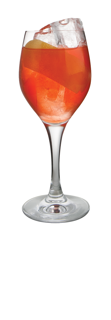 Vul een wijnglas met ijs, voeg de ingrediënten toe en roer.